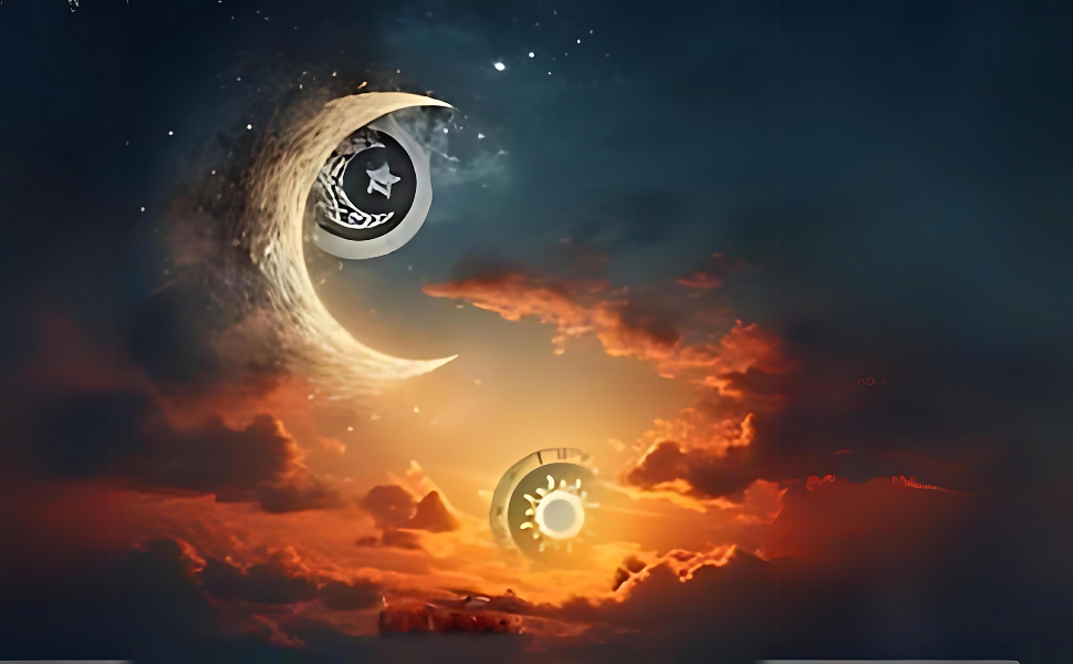 Sonne und Mond, ewige Gefährten, sind stille Zeugen des Wechsels von Tag und Nacht und symbolisieren ewige Liebe. Lass deine Liebe der Sonne und dem Mond ähnlich sein, immer zusammen, nie getrennt.